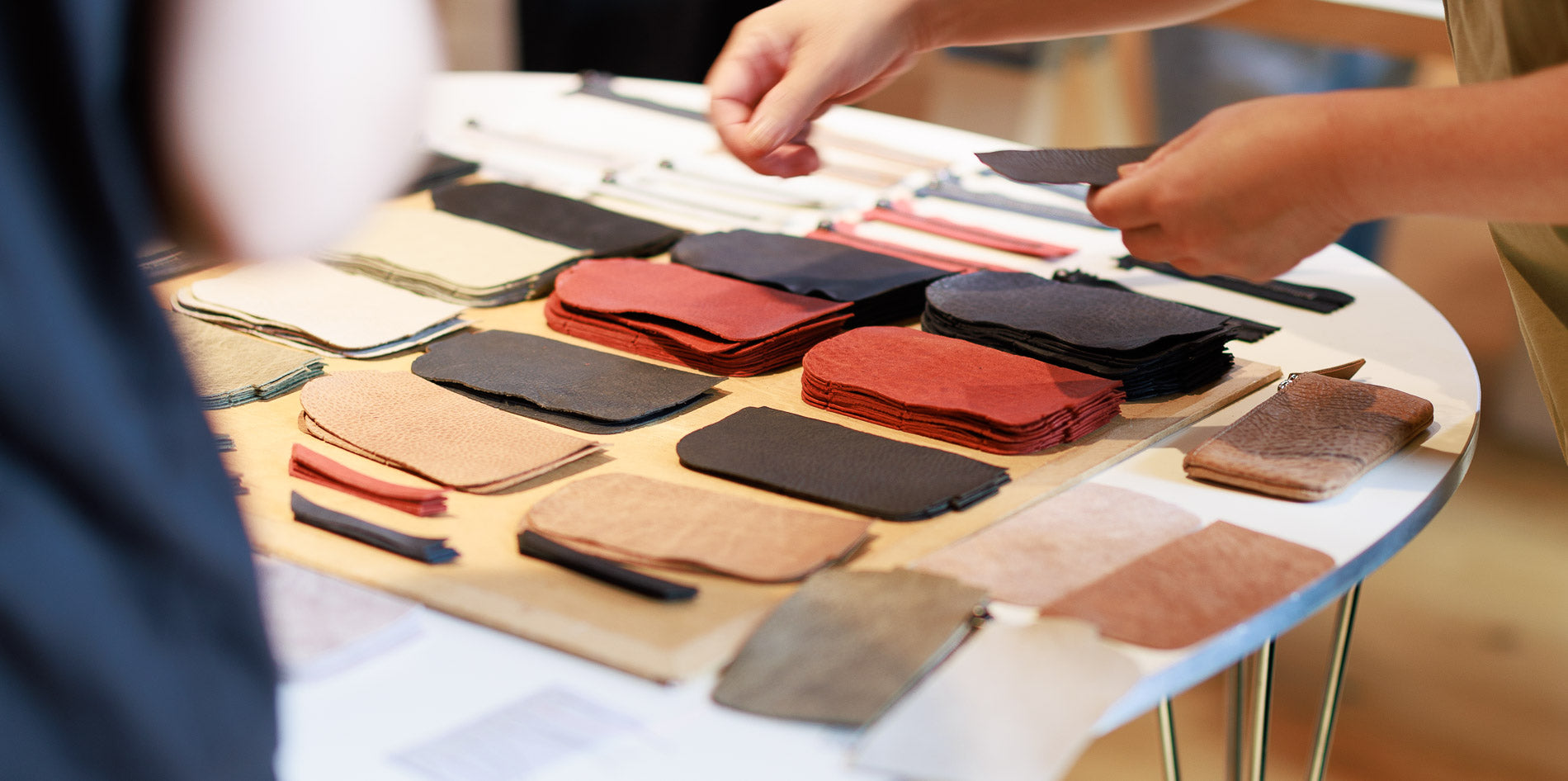パーツ選びは色が多く皆様、悩まれていましたが、牛革、豚革、ファスナー、糸色と好みの色をベースに様々な組み合わせを楽しみながら選んでいました。