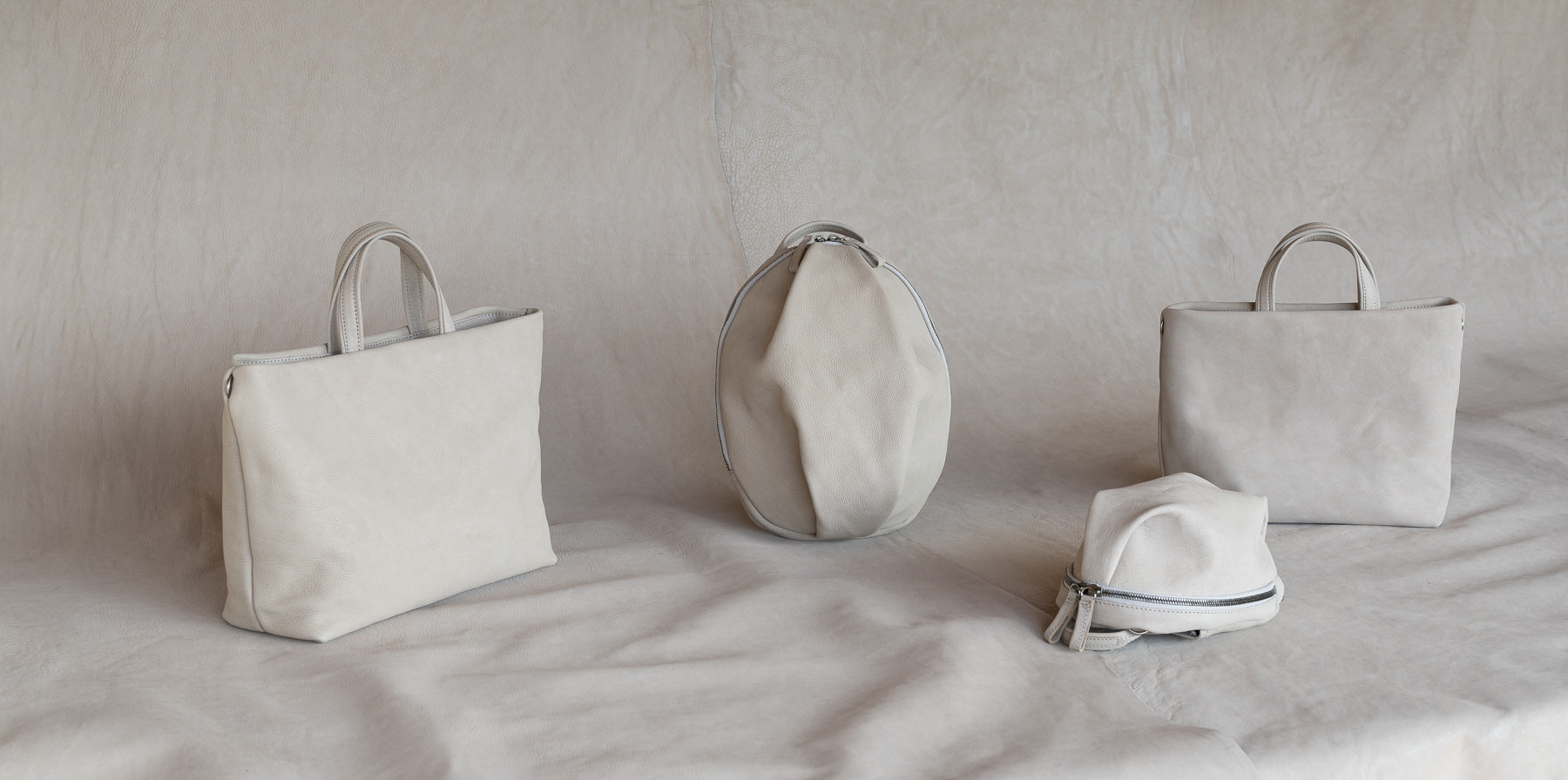 平面から立体になったとき、落ち着きと和らぎといった気品を感じるGYP。革の自然な凹凸にできる陰影が表情豊かに寄り添います。持つとゆったりとした気持ちになれる色です。使い込んだ色味は未知数。経年変化の色艶が増していく工程を楽しみながら末長くお使いください。
