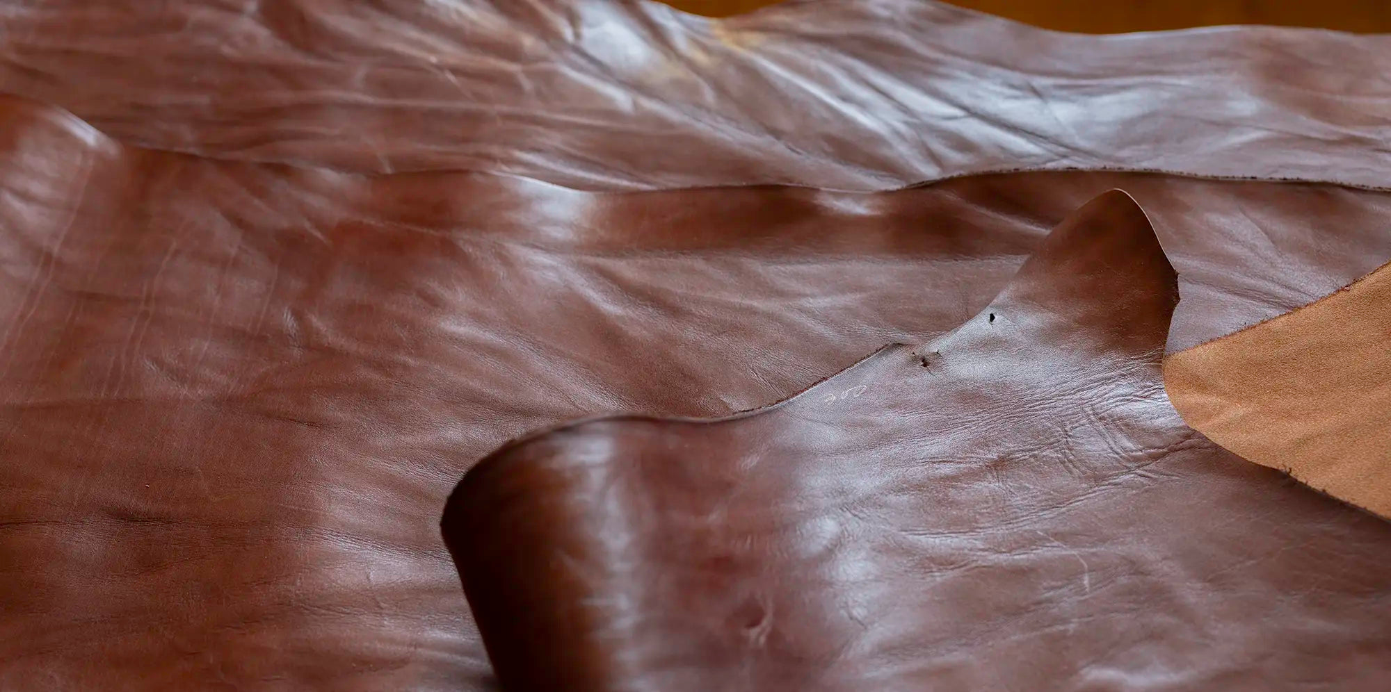 ディナオイルはオイルタッチのヌメ調のカウレザー(牛革)です。植物タンニン鞣しをし、手作業で一枚ずつ丁寧にしぼり上げることでランダムなシワが入り、同じものが二つとないさまざまな表情を生み出します。また、染料とオイルで仕上げることによって透明感と深みのある独特の発色が魅力です。バッグ作りを始める時にこの革と出会い、そのヨーロッパの革にも負けず劣らない迫力に魅了され選んだLampiの原点と言える革です。