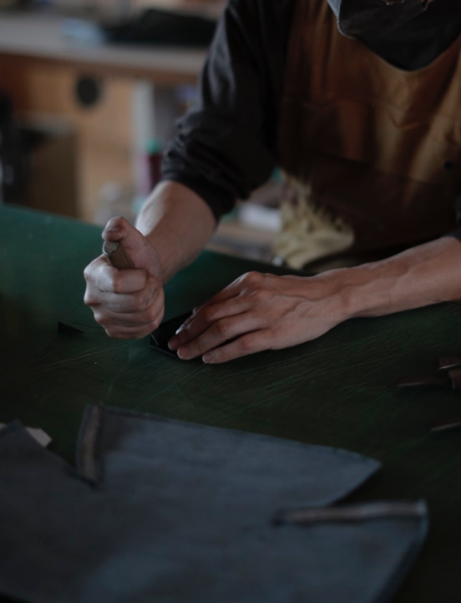 貴重な国産レザーを用いたものがある生活をみなさまにも体験していただきたいという思いで日々革と向き合っています。